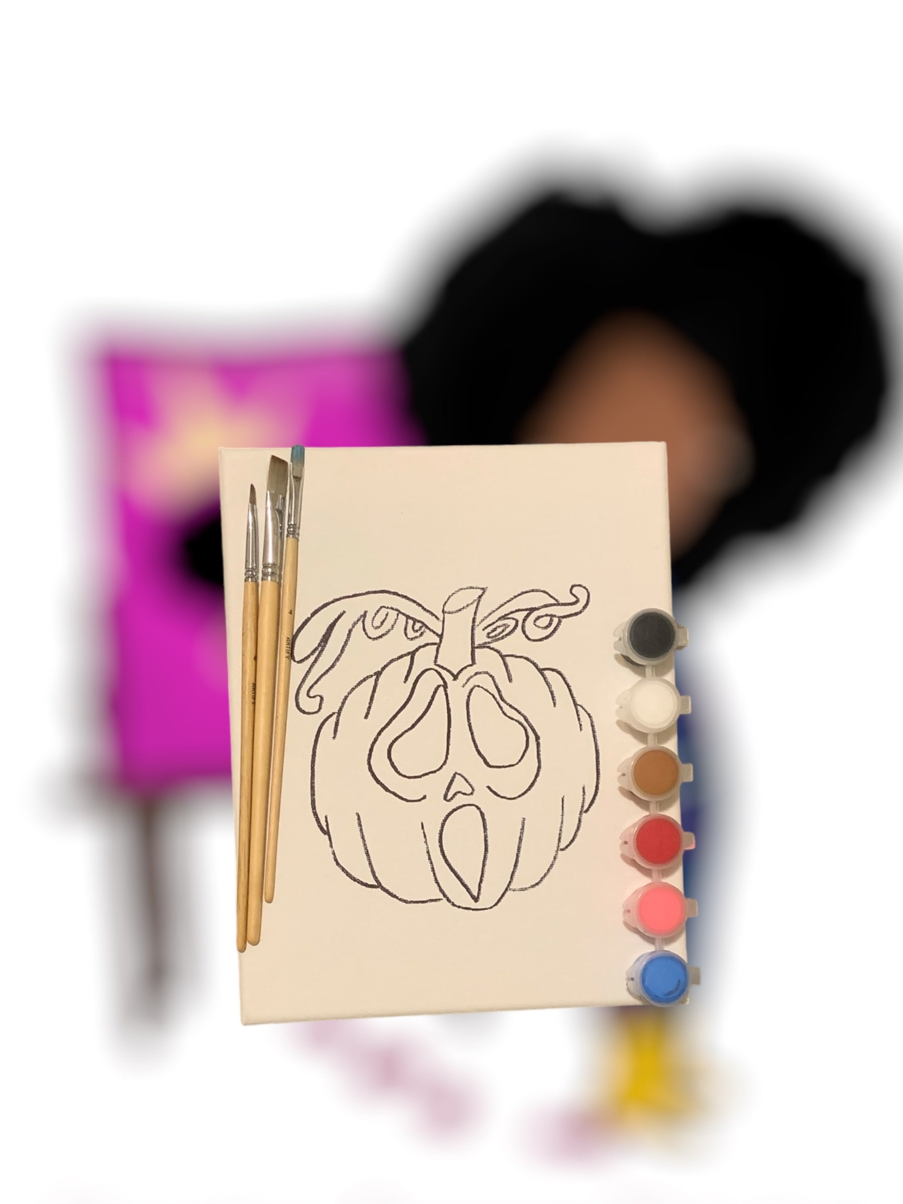 All paint set includes easel, pre drawn canvas, paint, and paint brushes.
