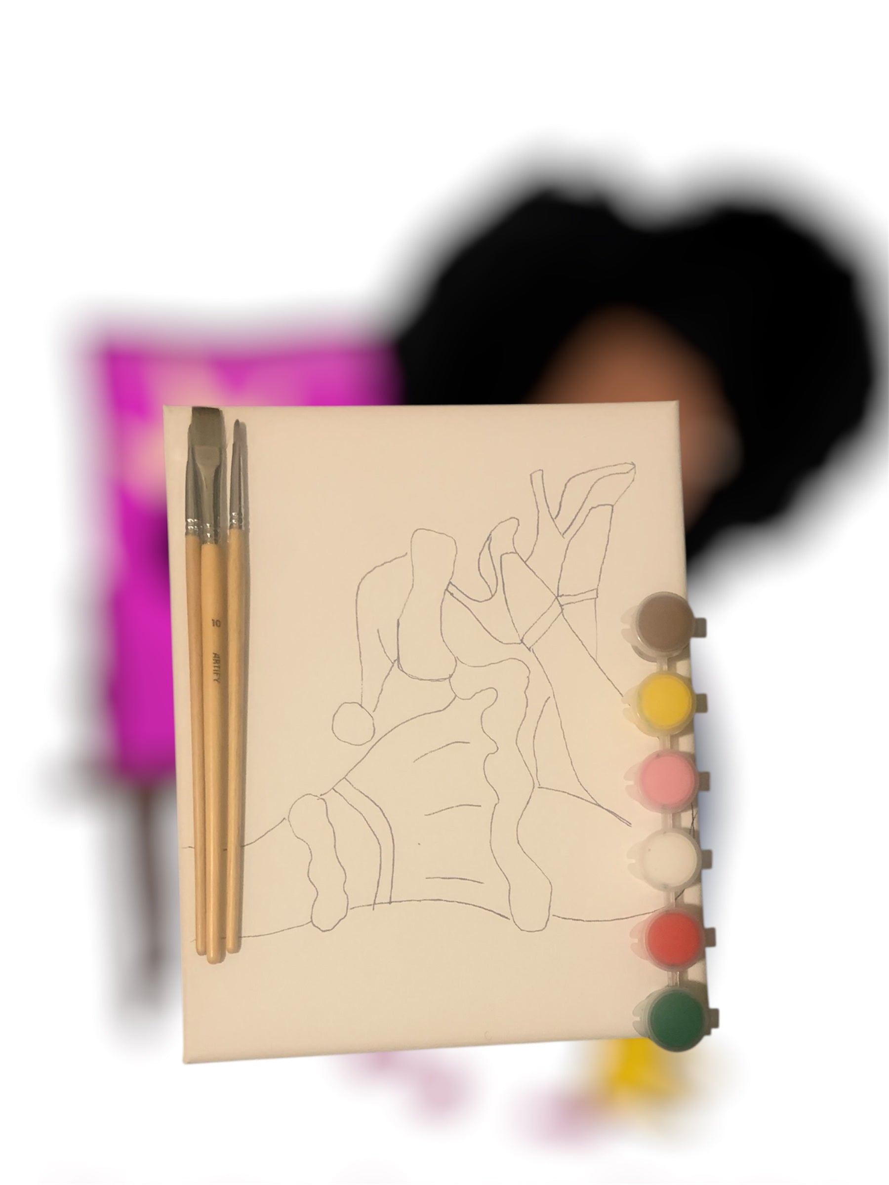 Each paint set includes; pre drawn canvas, paint, paint brushes, and an easel. Available for all ages