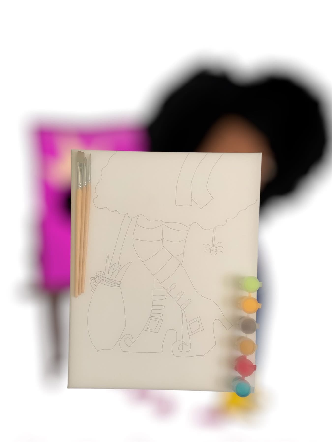 Each paint set includes; pre drawn canvas, paint, paint brushes, and an easel. Available for all ages